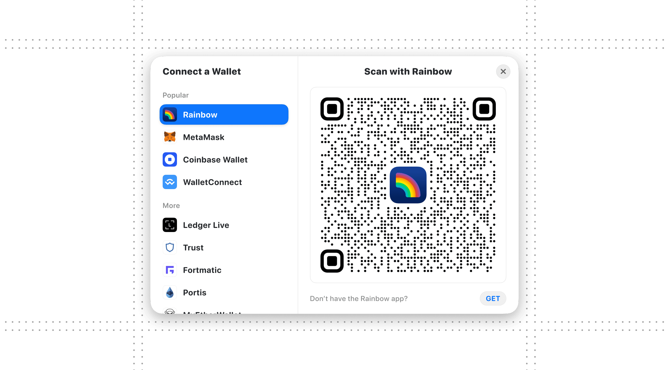 By default, RainbowKit's modalSize is set to wide (and looks like this):